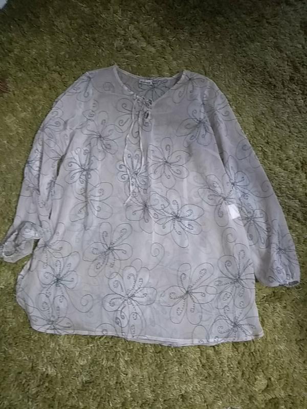 Лёгкая туничка. Состояние отличное (без зацепок, потёртостей). Покупала себе для пляжа (одела один раз)) Размер 46-48. Лёгкая, удобная, цвет универсальный, по бокам разрезы, рукав низ на резинке. Доп вопросы, замеры, фото - пишите!