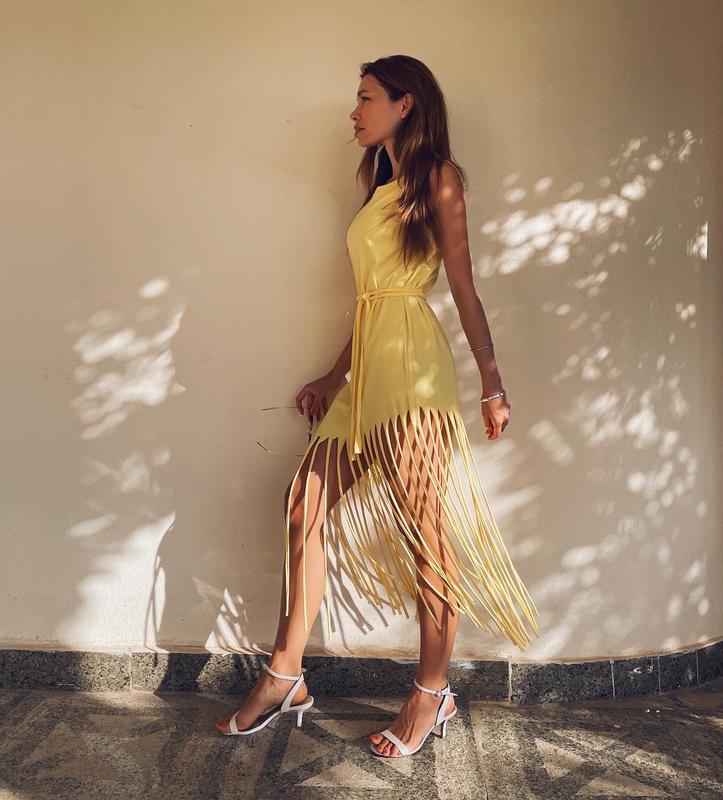 Летнее, стильное платье ( 100% хлопок ) идеально подойдёт для отдыха, морской прогулки, танцев ( в нем нереально приятно танцевать, бахрома очень красиво заигрывает в танце ) , очень многие клиенты носят платье как тунику на пляж, смотрится бесподобно на загорелом теле ) универсальная, стильная летняя вещь) есть ещё в розовом, чёрном и бежевом цветах :) таблица размеров в галерее)