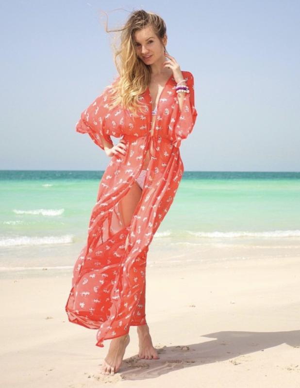 Туника KniteKat, handmade from Dubai Цвет - коралловый Анималистический принт Длина 156 см One size
