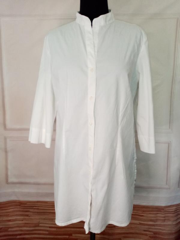Рубашка туника из 100 %хлопка хлопок плотный хрустящмй пог 57cм пот 53 поб56 см высота по спине 76 см плечи 45см длина рукава 41см пор17 см воротник стойка у туники по бокам есть 2 разрезапо 21см