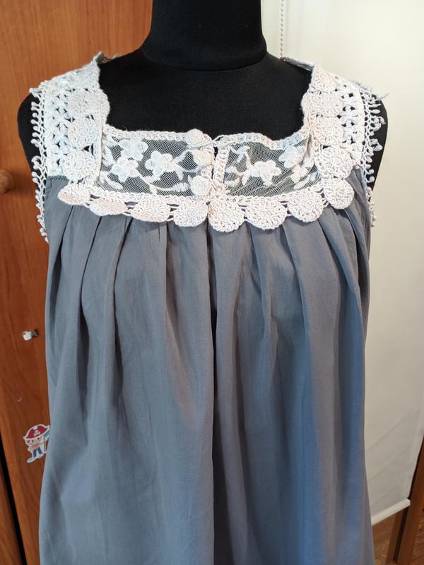 Очень красивая туника (либо короткое платье). Верх - тонкий хлопок. Недостаток - есть мелкие дефекты на шариках по краю кружева на проймах рукавов. Просто некоторые шарики на кружеве немного растрепаны.