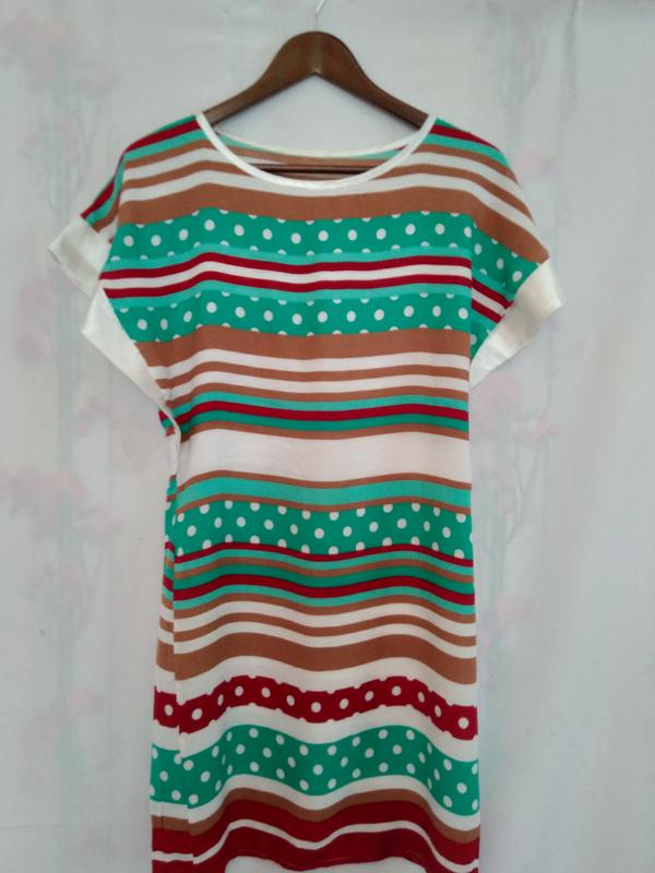 Туника, состояние очень хорошее. Без дефектов. Не приталеное, пояса нет. Длина 89см, полуобхват груди 50см, полуобхват талии 42см, полуобхват бёдер 46см. Размер не указан, состав не указан, напоминает искусственный шёлк. Остались вопросы пишите-отвечу. Оплата на карту.