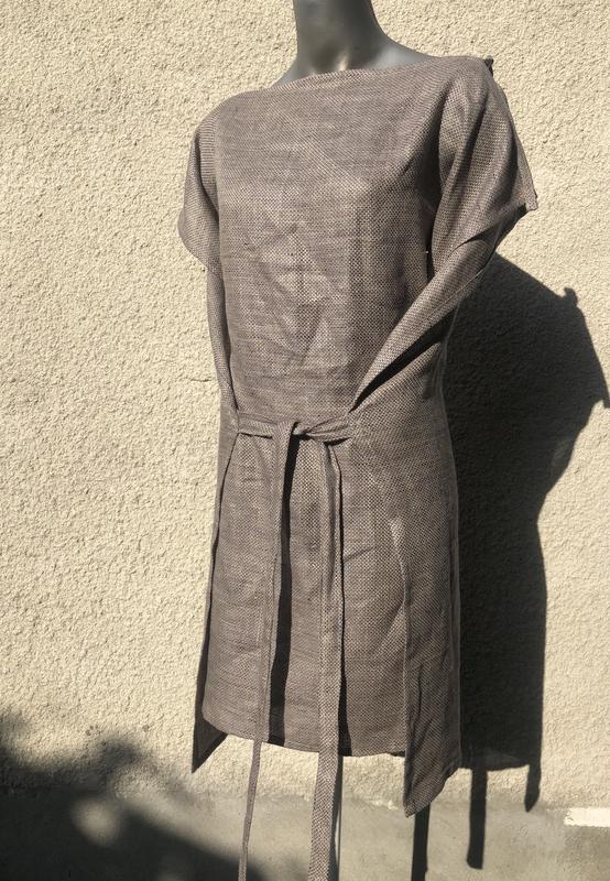 Туніка з натурального льону з цікавою структурою. Має зав’язки на плечах та по боках. Можна зав’язувати наперед або позаду, також можна носити як пончо, також красиво виглядає зі штанами. Розмір регулюється