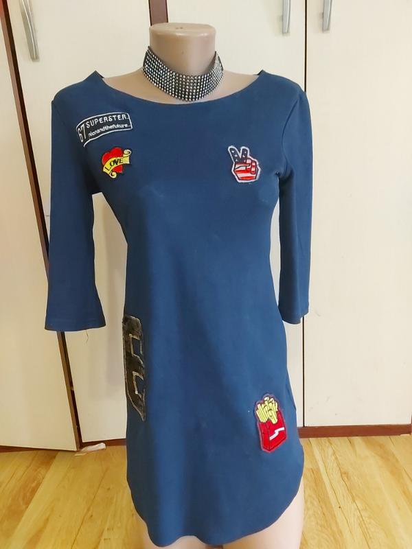яркая туника с нашивками. ткань очень приятная к телу. по бокам разрезы