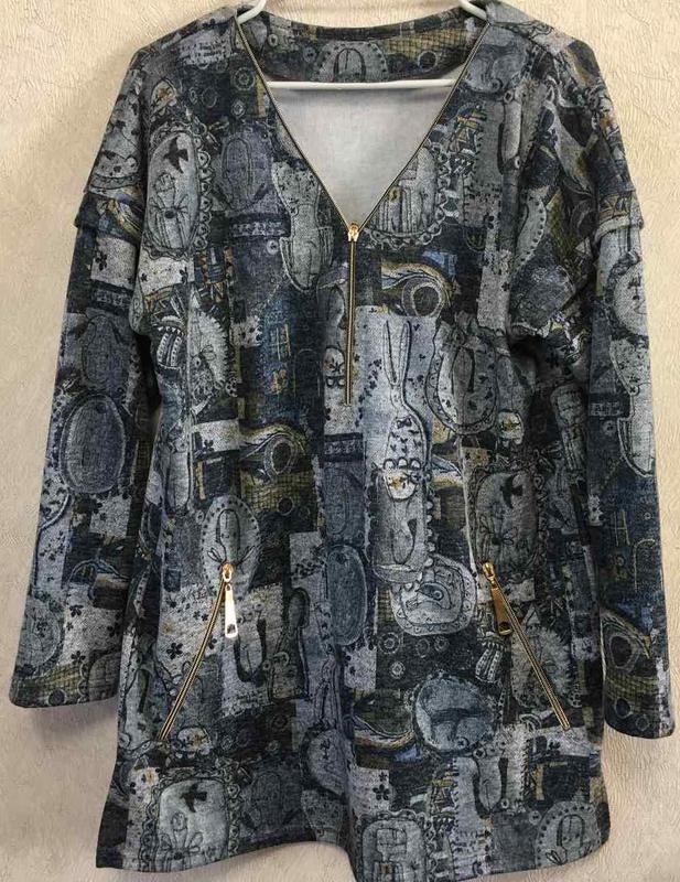 Приятный на ощуп трикотаж. Яркие, блестящие змейки придают нарядность. Два внутренних кармана. Рукав спущенный. Длина - 78 см ПОГ - 55 см длина рукава - 55 см