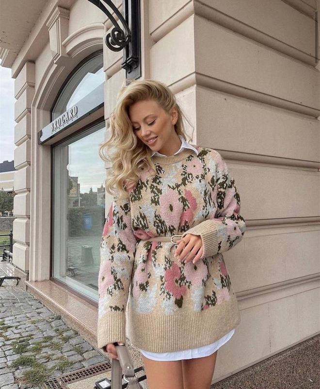 🎀Новинка🎀 Модель 350 "Трикотажная модель из акриловой пряжи украшена цветочным орнаментом. Кофта имеет свободный прямой крой со спущенной линией плеча. 📌Замеры: ПОГ 63 см, длина по спинке 75 см, длина рукава от горловины 67 см, длина рукава по внутреннему шву 43 см ▪️Материал: мелкая машинная вязка ▪️Размер: 42-48 ▪️Цена 897 грн 🧷Производство Турция" #кофта