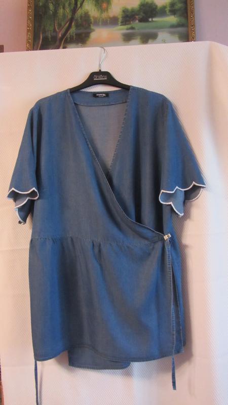 тоненькая джинсовая туничка на запах,в идеале.пог62см,пот62см,поб70см,длина 83см.