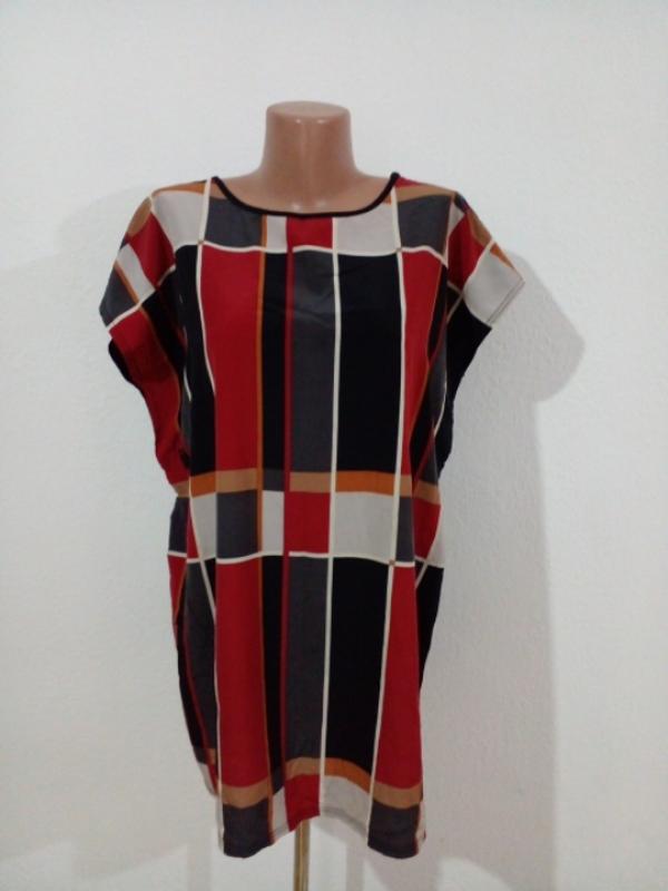 На фото показала нюанс,з обох боків розпоролося по боковим швам,в ціні враховано . Можна носити і під пояс і без( пояс в комплект не входить). Зад трикотаж, перед тканина схожа на натуральний шовк,можливо купро або віскоза. Може бути і як пляжна туніка, і як домашній одяг,і просто на кожен день. Розмір вказано Л пог-62 поб-63 довжина-80-83