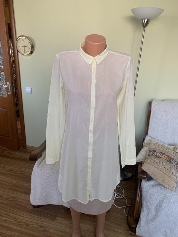 Длинна-85, плечо 11, рукав-63, поб груди-50, талии-48, белер-50. Качество: тонкий хлопок, светлый делтый.