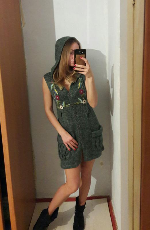 Вязанная туника с капюшоном,без рукав, на пуговицах, с карманами. Размер С-М