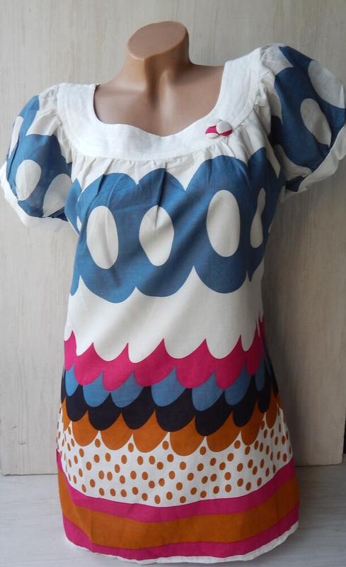 Бавовняна яскрава коротенькая сукня. Знизу підкладка. Матерал не тягнеться Розмір М Довжина 80см Напівобхват по грудях 47см Напіобхват по талії 45см Напівобхват по стегнах 50см Матеріал 100% бабовна Сток Іспанія, пошив Китай