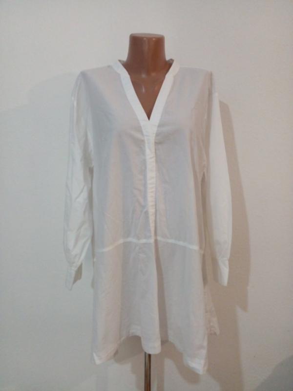 Без слідів носіння, розмір вказано ХЛ,піде і на більші. плечі-50-52( спущені) пог-66 поб-72( по лінії відрізу) рукав-58( від плеча)-74( від горловини) довжина-85-90( спинка) трохи просвічує,але якщо на брюки чи спідницю, нормально.