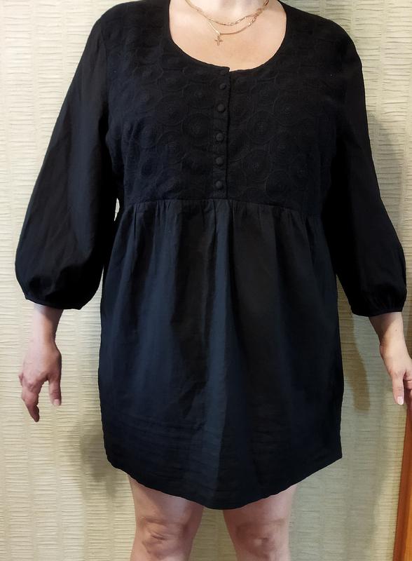 ‼️😍Заказывайте несколько вещей - экономьте на доставке и получайте скидку😍‼️ Состояние новой! По бирке размер 48 европейский, что соответствует нашему 54.. Носить можно на размеры от 48 (фото 3 сделано на размере 48) как модель оверсайз и до размера 54 (фото 1, 2, сделано на размере 52). Ткань тонкая, очень лёгкая. Спереди вверху красивые узоры-вышивка, на пуговичках - расстегиваются. Длина 86 см, ПОГ 60 см, рукав три четверти. От пары вещей с моей страницы - есть скидка! Отправка Новой, Укрпочтой, после оплаты на карту. Читайте мои Отзывы) На моей странице много вещей подобного размера 💐