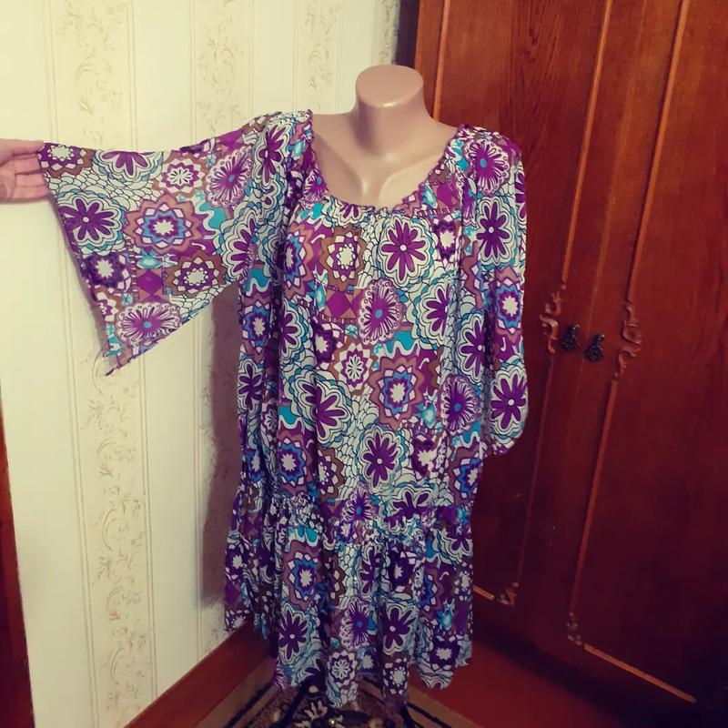 Легкая шифоновая туника в красивом принте горловина и талия на резинке жатка Дл.93 Ог 140 Об 180 Р40 От 120-150 состояния н/в