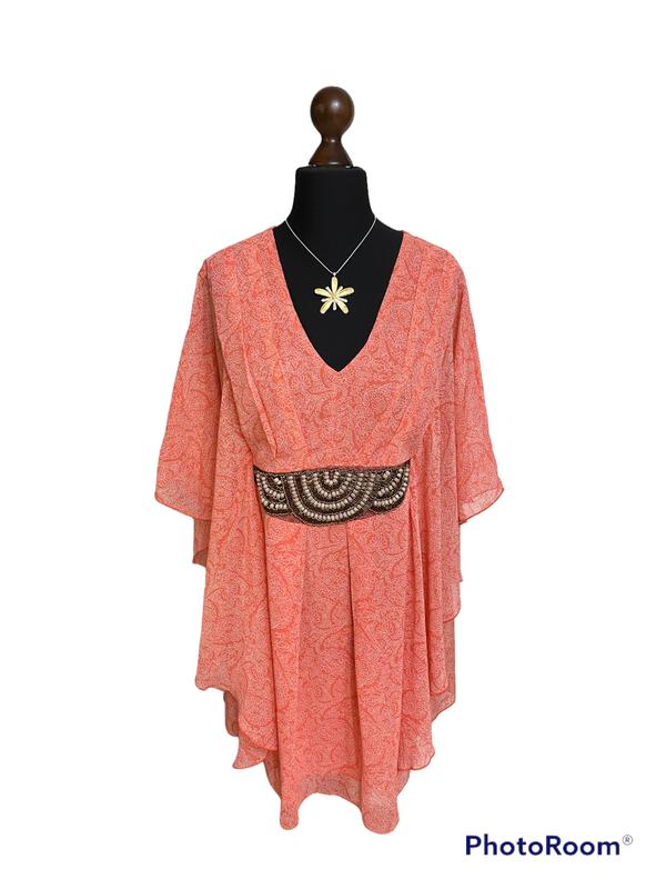 🦋🌺Apricot 🌺 Розмір: 16, можна і на меньше Рукавчик від горловини- 44 ПОГ - 57 ПОТ - 45, різинка ПОБ - 74 Довжина - 90 Тканина тоненька, не тягнеться , є підкладка, поліестер і еластан. 🦋Стан ідеальний 👍