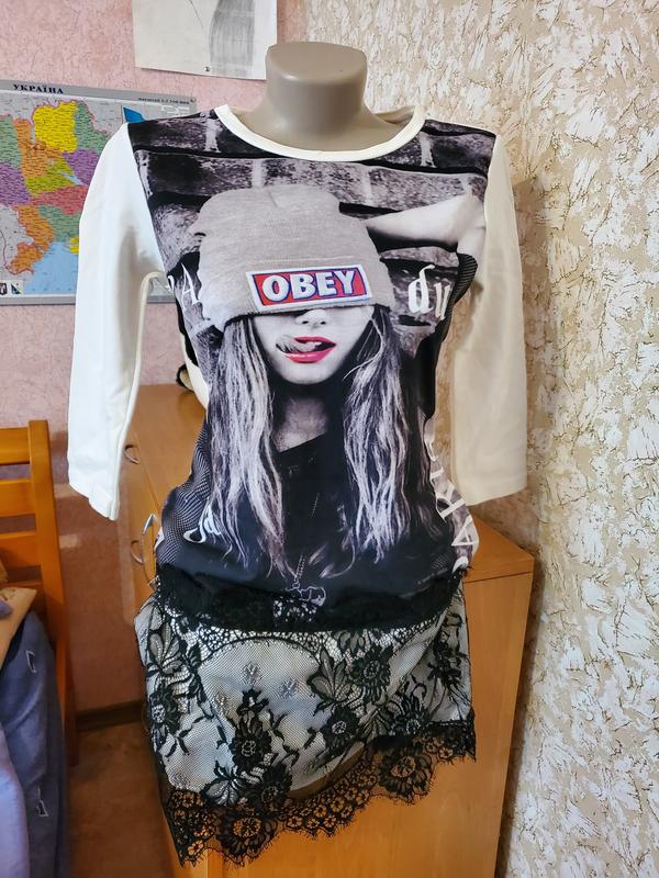 Платье молодёжное в спортивном стиле. Ткань трехнитка в комбинации с кружевом. Размер М.