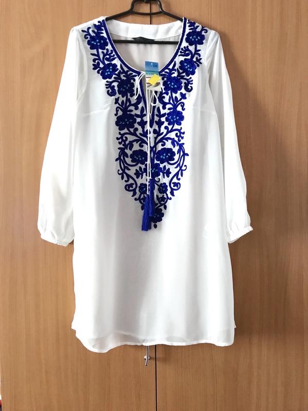 Новая стильная туничка размер по бирке S/8; 160/84 A. Длина 87 см. ПОГ 46 см. Рукав 57 см. Плечи 37 см.