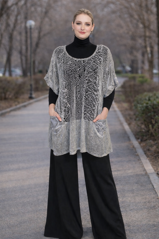 Интересная вещичка. Как тоненькая кофточка. Есть кармашки. Можно носить на водолазку. По бокам чуть длиннее. Одета пару раз. ОГ 110-130 см ОТ 110-130 см ОБ 146-170 см Длина 71-82 см
