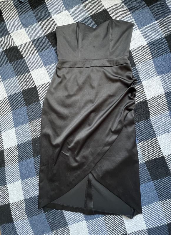 Дуже елегантна сукня, з переду розріз, на верхній частині на корсеті є вставки по боках, які дозволяють тримати форму. Бретельок не має. Тримається на корсеті.