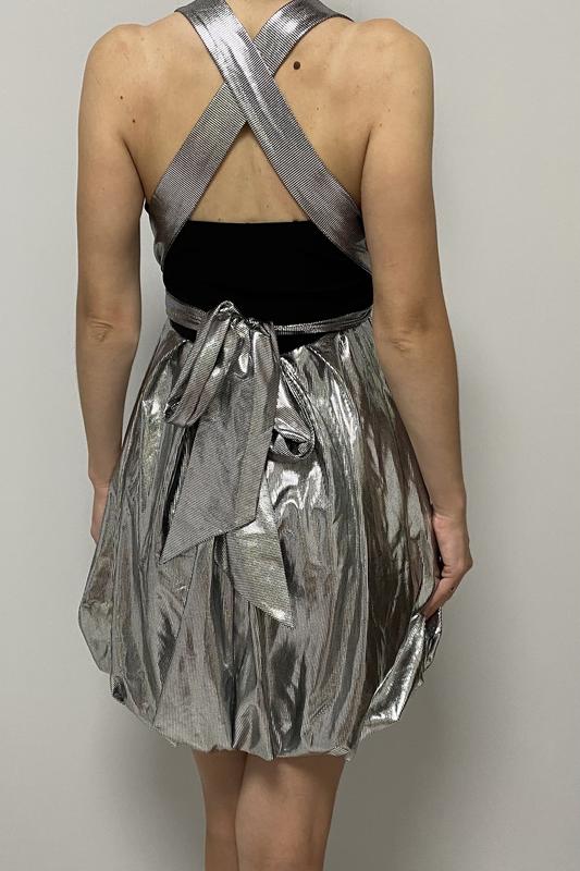 Яркое коктейльное платье. Ткань очень красиво переливается. Интересный пошив, на плечах длинные ленты, которые можно завязать как душе угодно и на спинке и впреди. Ткань легко тянется, подойдет на размер 40-46. Длина от плеча 80 см. Состояние нового, одето один раз