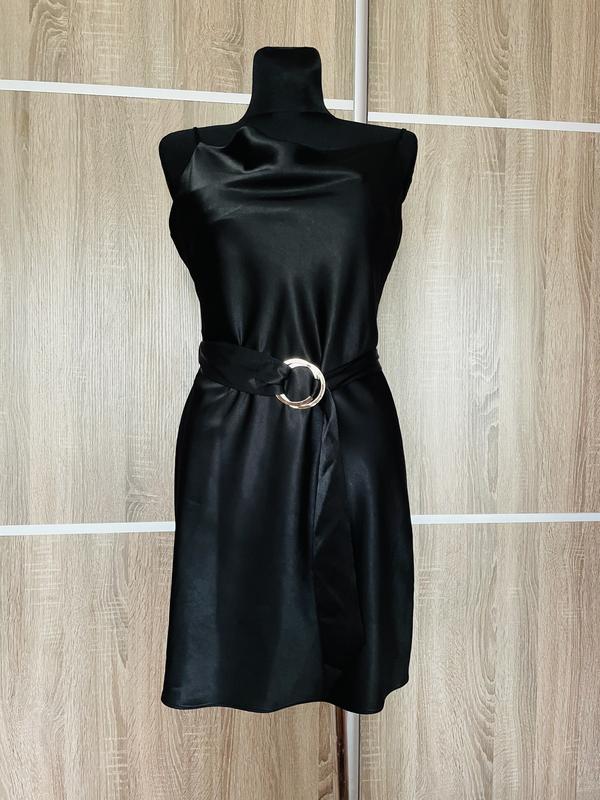 Нове. Тканина як атлас. З ізнанки матове. Попереду м'яка які складки Розмір 38/М Пог45 см Пот 46 см Пос 53 см Довжина від плеча 89 см