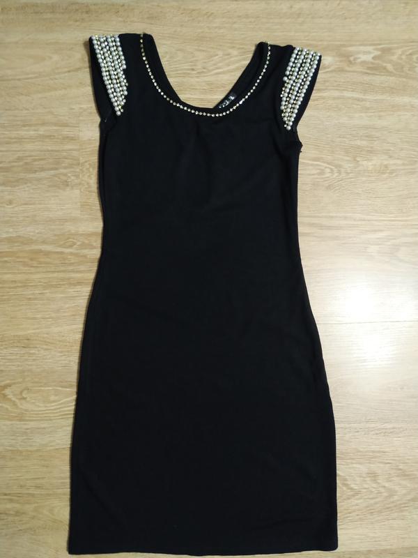 Вечірнє чорне плаття. З бусинками на плечах і красивою спинкою. Лягає по талії. Одягала один раз