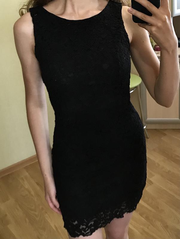 Чорна ажурна сукня, є підкладка, розмір S, довжина 77 см, ширина в грудях 36,5 см