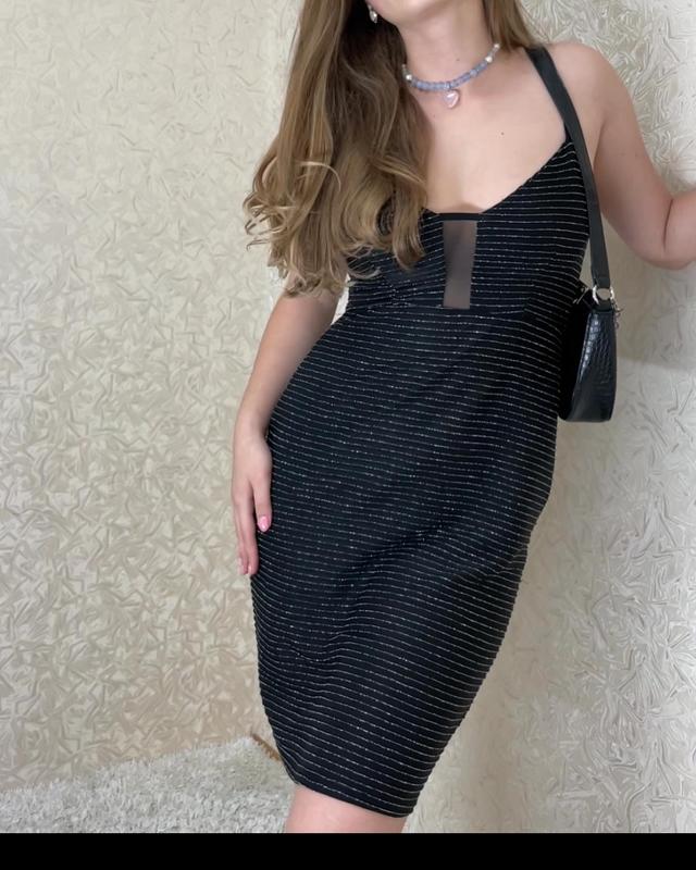 Зваблива блискуча сукня з сіточкою на декольте, добре тягнеться M-L •Одягнуто на зріст 160 см 91-72-95