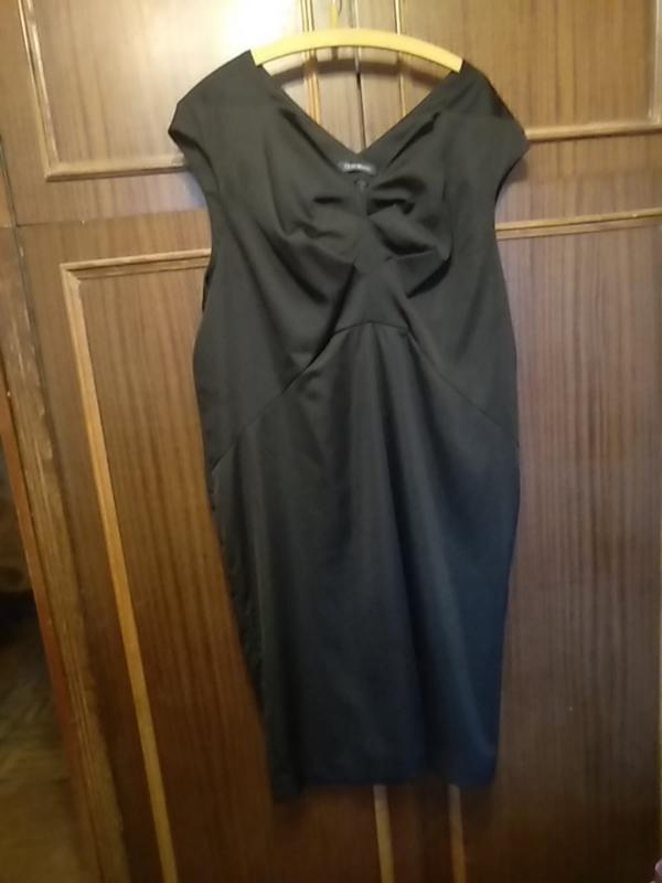 Вечернее маленькое платье-футляр. На атласной тонеой подкладке. Очень хорошо ложится по фигуре и держит форму. Красивая драптровка на груди. Очень выгодно подрезано под грудью.Интересный фигурный вырез. Сзади шлица. Молния в боковом шве. Одето один раз. Длина110 Пог62 Пот 66