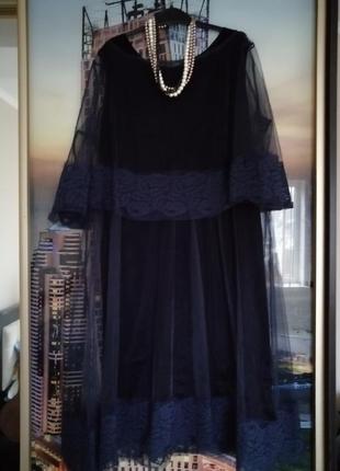 Элегантное платье 2 в 1👗🎀, темно-синего цвета, состоит из нижнего велюрового платья и фатина наверх, можно носить с ним, или без него. Непревзойденный вариант для Новогоднего празднования или корпоратива! Одета всего несколько раз. Внимание! Платье продается без ожерелья😉 Платье идет примерно на 48 украинский размер (42 европейский). Замеры нижнего платья👇 Грудь - 45*2 см (верхняя накидка -55*2) ; Талия - 45*2 см (верхняя накидка - 50 *2) ; Длина по спинке- 86 см (верхность накидка - 94 см).