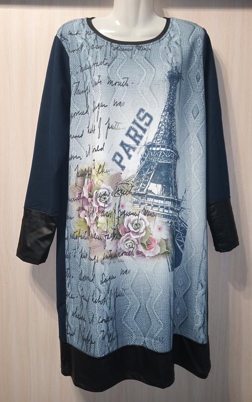 новое платье, на рукавах и по низу платье тоненькая эко кожа, спереди имитация вязкие