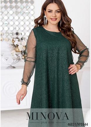 Платье Цена: 1120 грн Сезон: весна-осень, демисезонное Стиль: повседневный, вечерний Цвет: тёмно-зелёный Код товара: 8644 Материал: креп-костюм (растяжимость слабая)+евро-сетка с блёстками, 88%полиамид, 12%эластан Размеры изделия: 50-52,54-56,58-60 Замеры изделия в каждом размере: 50-52-ОГ 104 см. ОТ 120 см. ОБ 134 см. Длина по спинке 107 см. Длина рукава 62 см. Объем рукава 36 см. 54-56-ОГ 112 см. ОТ 128 см. ОБ 142 см. Длина по спинке 107 см. Длина рукава 62 см. Объем рукава 38 см. 58-60-ОГ 120 см. ОТ 136 см. ОБ 150 см. Длина по спинке 107 см. Длина рукава 62 см. Объем рукава 40 см.