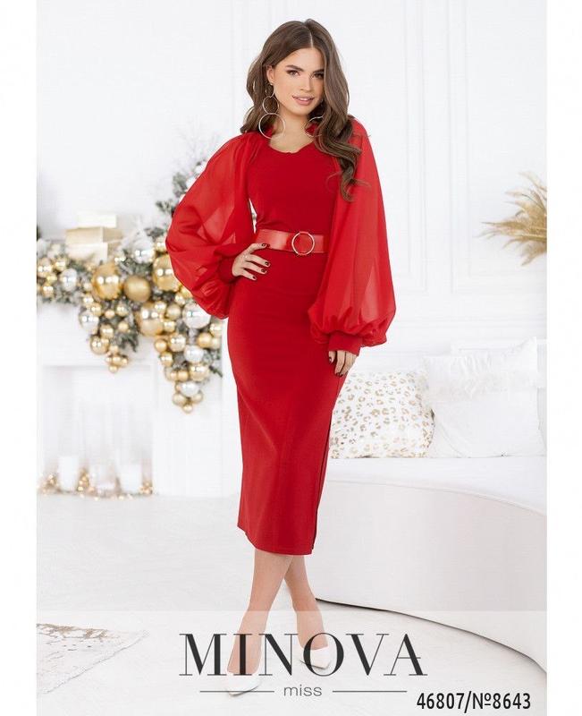 Платье модель: 8643 р-ры: 42,44,46,48 центная: 1200 грн ткань: креп-костюм+шифон (рукав)+ремень цвет: красный Ориентировочные замеры по готовому изделию: 42 р-р: длина платья 122см, длина рукава от горловины 76см, обхват рукава 80см, ОГ - 80см, ОТ -68см, ОБ -84см. 44 р-р: длина платья 122см, длина рукава от горловины 77см, обхват рукава 80см, ОГ - 84см, ОТ -72см, ОБ -88см. 46 р-р: длина платья 122см, длина рукава от горловины 78см, обхват рукава 80см, ОГ - 88см, ОТ -76см, ОБ -92см. 48 р-р: длина платья 122см, длина рукава от горловины 78см, обхват рукава 80см, ОГ - 92см, ОТ -80см, ОБ -96см.