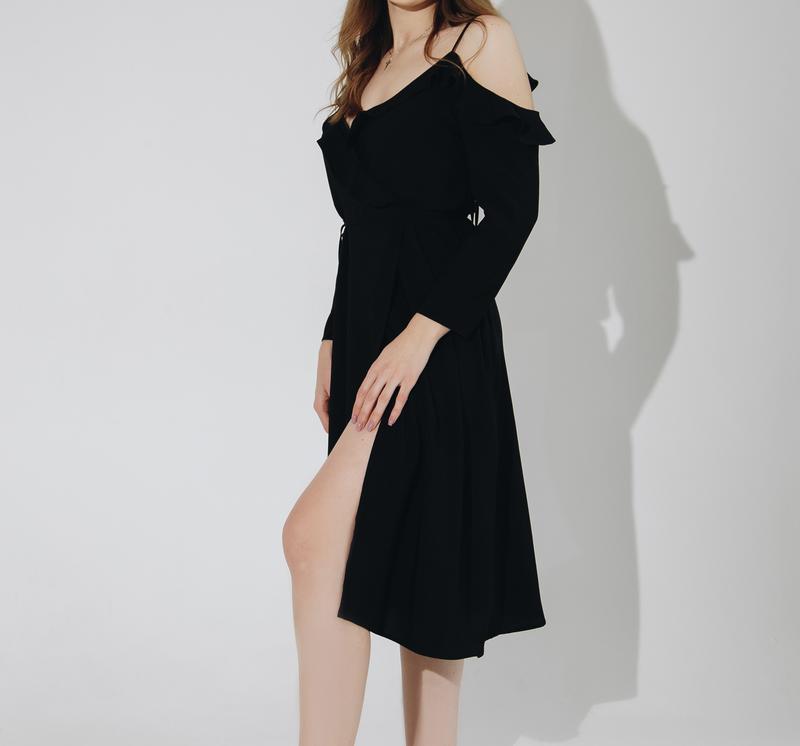 Чорне плаття на запах з відкритими плечима. Тканина костюмка Розмір регулюються