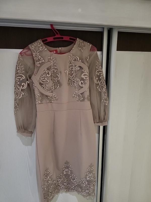 приталенное вечернее платье, рукава из сетки, украшены вышивкой