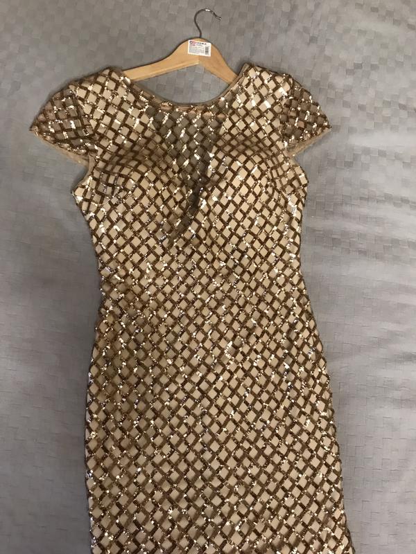 Праздничное вечернее платье Изящное платье макси с пайетками позволит вам блестеть в ваш вечер Благодаря эластичности ткани платье садится точно фигуре, подчеркивая все достоинства фигуры, создавая женственный силуэт. Застегивается на потайную молнию в центральном шве спинки.