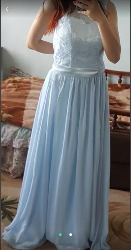 очень красивое платье из шифона верх с кружкой размер с-л регулируется завязками сзади в виде корсетов длинная есть подкладка не осветляется состояние без дефектов замеры: пояс и грудь регулируются корсетом длина от начала плеча до низа- 147 ззади длина -155