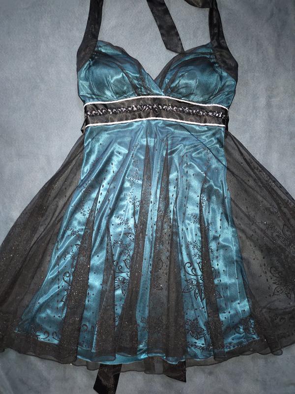 Гарна вечірня сукня. Підходить на випускний вечір, день народження чи для будь-яких інших святкувань.Нова. Без дефектів. На грудях вставки,що можна без бюсттгалтера одягнути. На груди 2 розміру буде ідеально. На 3 розмір дуже відкрите декольте. Зав'язується на шиї. Ззаду на спинці резиночка,для кращої фіксації сукні.