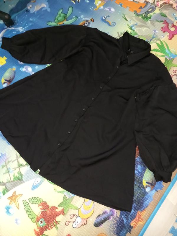 Черное платье-рубашка с фактурным нарядным рукавчиком. размер ХЛ. при необходимости задумывай замеры