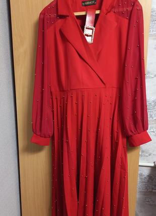 Платье красного цвета со стразами, поясочком 46 размер.Стан идеально.