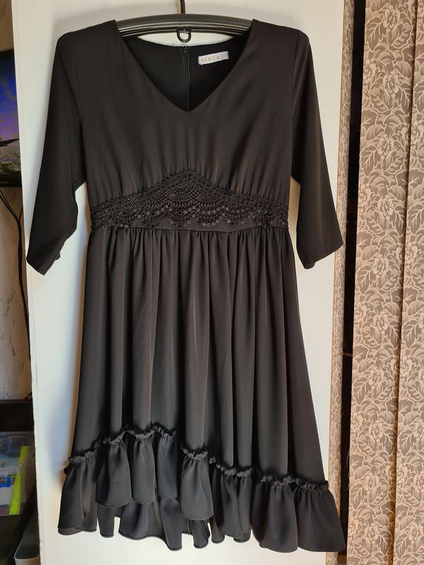 нарядное черное платье состав ткани 67% полиэстер, 27% вискоза, 6% эластан производитель Турция длина 90 рукав 43 ширина под рукавами 48 талия 39 на все вопросы ответь, сможет сделать при необходимости еще фото и видео