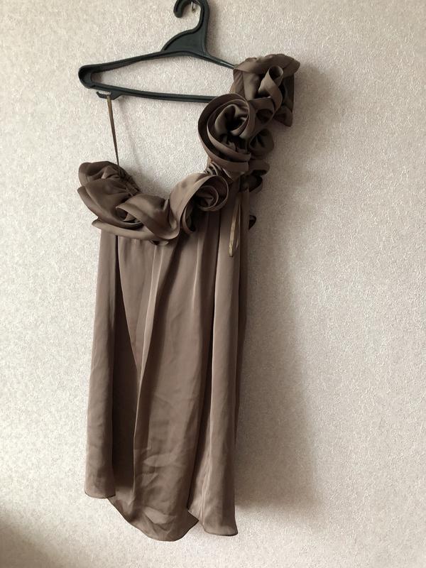 Очень оригинальное шелковое платье с воланами. Свободного кроя. На одно плечо.
