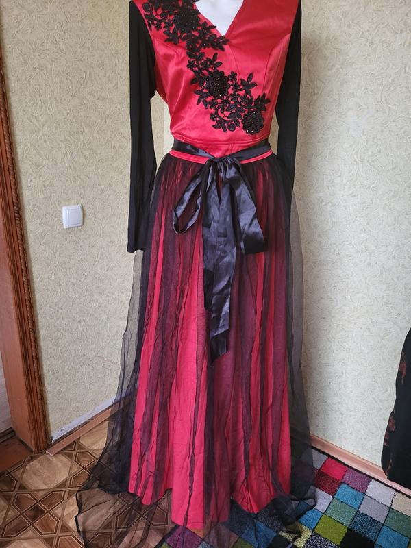 Платье длинное с кружевом и фатином