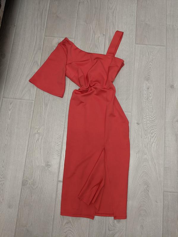 Ефектна асиметрична сукня Розмір 12 орієнтуйтеся по замірах ПОГ 44 ПОТ 38 ПОБ 49 тягнеться Довжина 118, распариха з воланом на одну ніжку