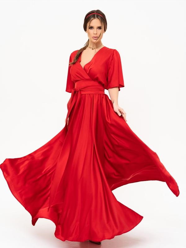 Шелковое длинное платье в пол с декольте на запах, вечернее платье, платье на выпускной