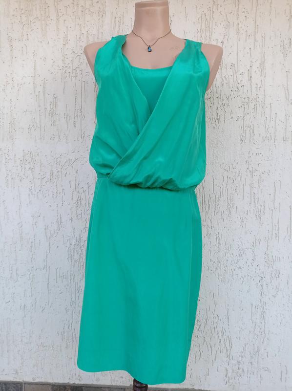 Стильное бирюзовое платье, 45% коттон, 55- шелк, на подкладке. Длина 93, ПОГ 44, ПОБ 48, талия 38. Стан - идеальный.