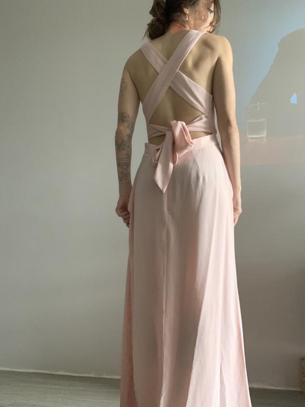 На спине под завязкой есть застежка. Размер ХЛ, но на фото сидит на С, но поясная лента свисает, на М, Л будет супер. Без подкладки