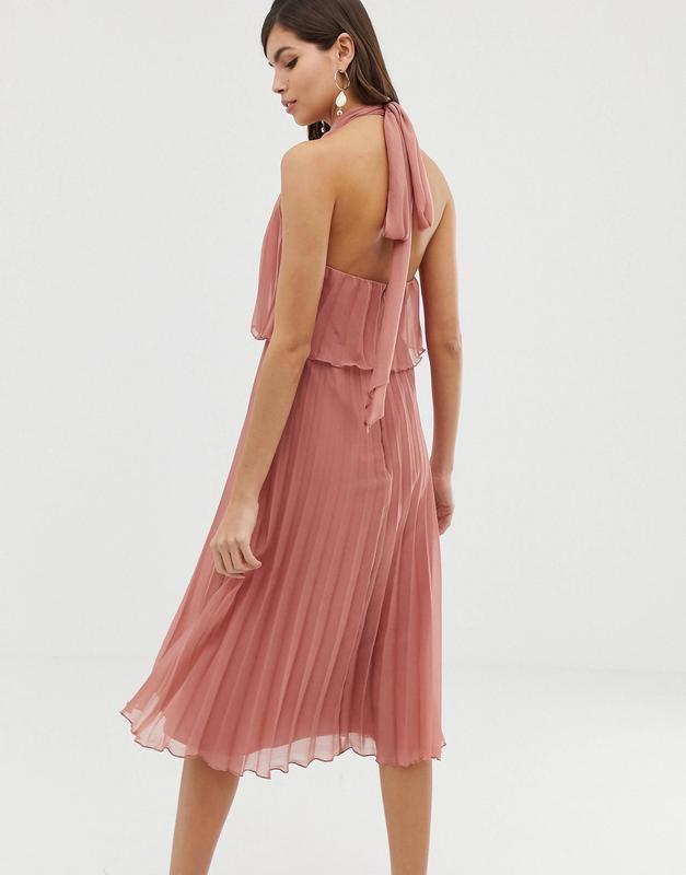цвет как на проф фото Плиссированное платье миди с халтером и завязкой ASOS DESIGN Uk8 Длина 115 Пог 43-46 Пот 36-38 Мини нюанс