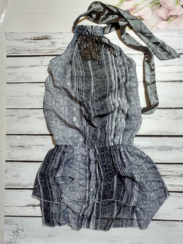 Верх шифон, есть подкладка. Размер указан С, но подойдет и на М. Талия на резинке 35 см, тянется до 48 см. Длина от пояса до низа 36 см, длина спереди от пояса до верха 59 см. Спина на резинке.