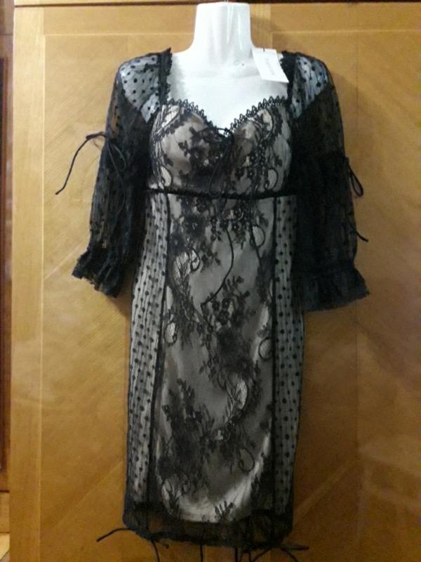 Изысканное платье с бумажной биркой от FLAMANT ROSE. Верх - красиве кружево. В середине подкладка. На бирочке размер M. Замеры делали с середины. В лиф вставлен поролоновые чашки-вкладыши. Полуобхват груди 44 см ( тянется до 46 см), по талии 40 см, по низу 56 см. Плече - рукав 50 см. Высота по спине от плеча у горловины 90 см, от подмышек 70 см ( из них до талии 8 см), по переду по середине 73 см. Состав на фото ❗Отправляем после полной платы на карту Приватбанка. ❗Доставка Новой или Укр по почте за средства покупателя. ❗Возвращение и обмен нет. *8265*